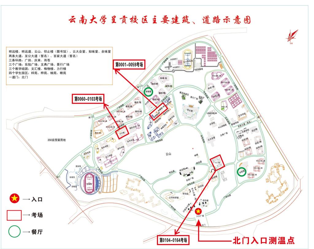 3.从云南大学呈贡校区北门步行至文汇楼考区约需20分钟,从北门步行至格物楼或力行楼考区约需30分钟,考生须合理安排出行时间。