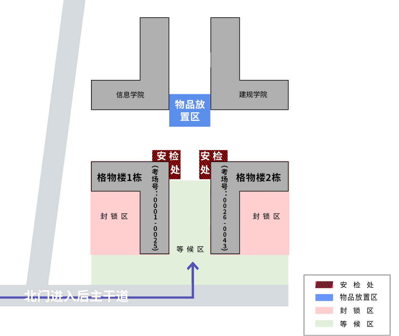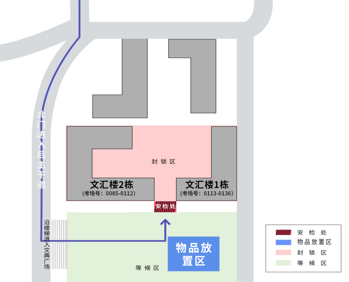 4.从北门入口步行至文汇楼考区约需20分钟,步行至格物楼或力行楼考区约需30分钟。